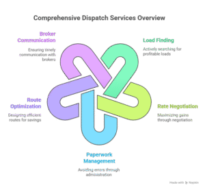 The dispatch services grow revenue per mile through rate negotiations and optimization of routes. They also reduce empty miles enhancing efficiency and profitability of their operations.
